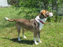 June, 2012. Our next foster was Bo, a two year old hound mix. According to IndyHumane Bo and his sister Sadie were “super under socialized. The world scares them.” We weren’t available to foster when they first came in, but I spent four or five long sessions working with Bo and Sadie at the shelter. Bo was fostered for several weeks by another couple and seemed to have done pretty well, but IndyHumane still wanted him to have more time in foster care while being available for adoption.