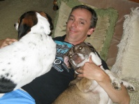 Bo was a little too mouthy and mounting with Boomer at first, but responded very well to corrections. Soon they were running helter skelter around the deck and yard together and getting along pretty well both inside and out.